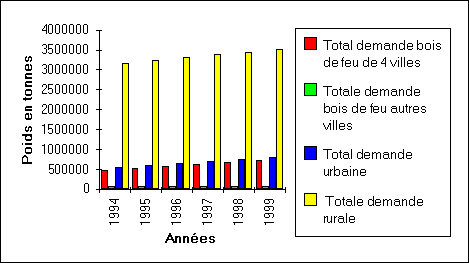 Le tableau 1 présente la demande en bois de feu pour les cinq dernières années.