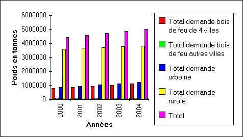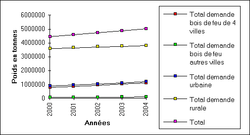 Tableau N° 12 : Projection de la demande en bois de feu (2000 à 2004)