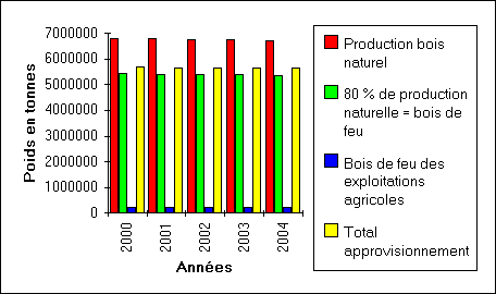 Tableau n° 15 : Projection de l'approvisionnement en bois de feu (2000 à 2004)
