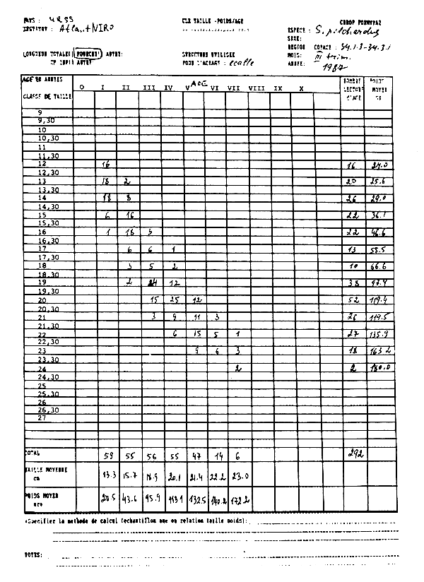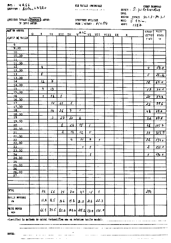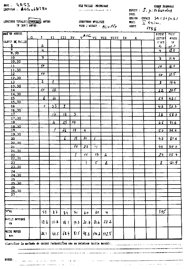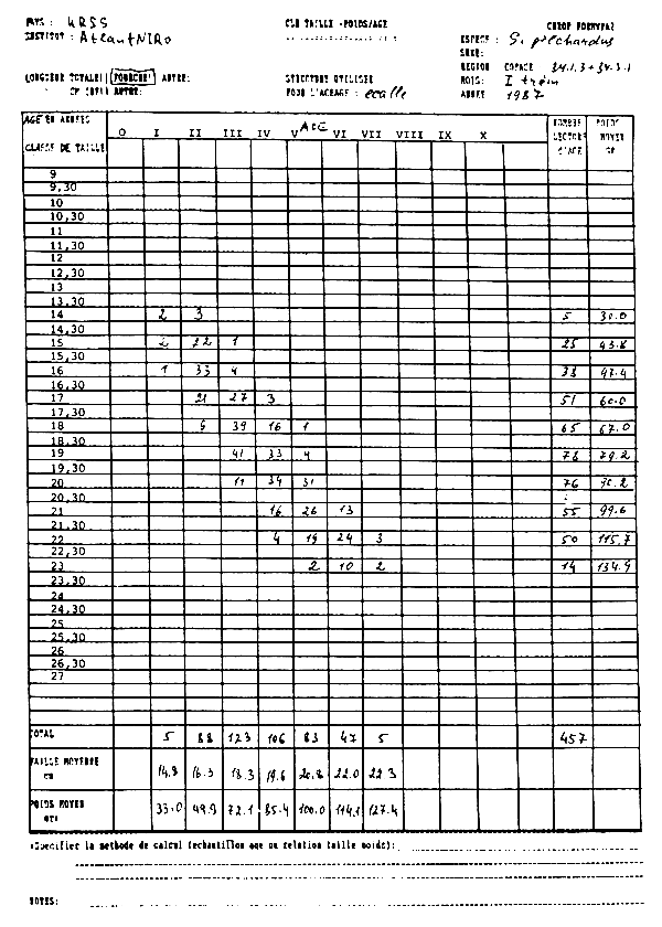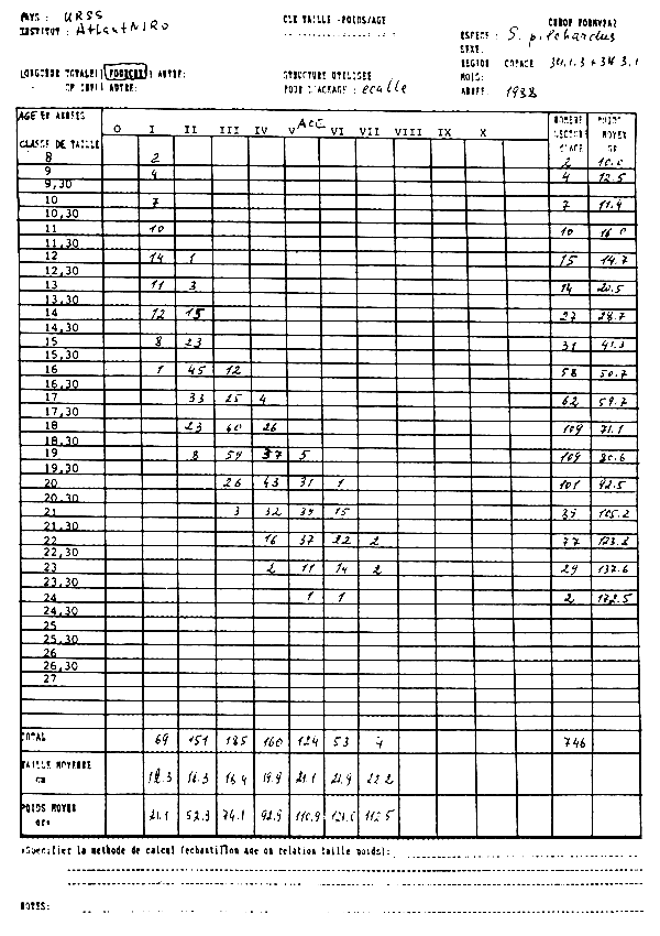 Cle age-longueur et relation taille-poids des captures sovietiques dans la zone C (1987–1988).
