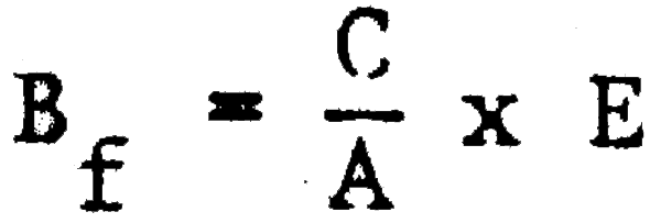 en la que Bf es la ictiomasa por unidad de superficie, C es la captura por arte, A las zonas barridas por la red y E una medida del rendimiento del arte. En el caso de los artes de arrastre, A se define además como Dgh, donde D es la distancia recorrida, g la anchura de la red y h la altura.