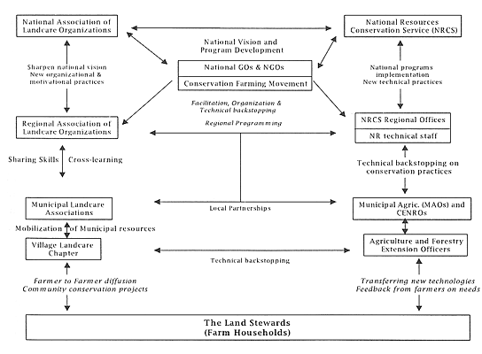 Landcare is emerging as a method to empower local governments and communities to effectively and inexpensively disseminate conservation farming and agroforestry practices. The experiences and lessons learned in Claveria provide a strong basis to scale-up to the regional and national levels, and to scale-out to other municipalities (see the vision for this national Landcare movement in Figure 3).