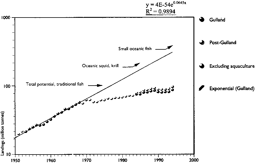 Figure 8. Trends in world marine fish landings in relation to potential