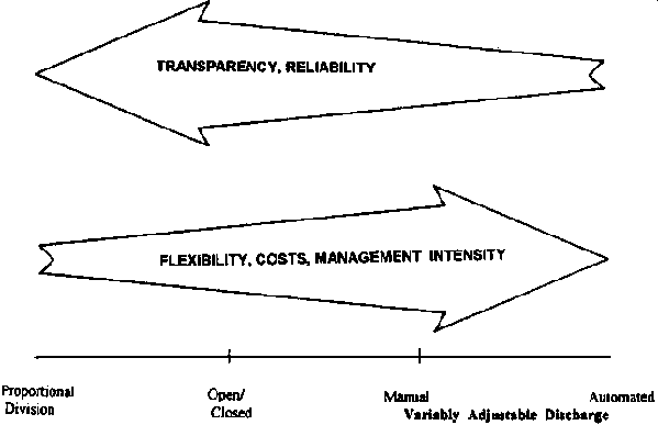 As the pressure of water demands increases where water resources are scarce, intake and distribution of irrigation water need to be kept under proper management through appropriate seasonal and regional control of water intake/distribution facilities. Intake should be limited to the smallest quantity that meets the users' demands in the lower reaches of an irrigation system, and water must be distributed carefully in proportion to demand. Otherwise, it is impossible to satisfy the demand for irrigation water in the whole region. Impartially, as mentioned above, means not only equally but also in necessary and sufficient quantities. Each user is responsible for water management so that improved efficiency of water utilization will meet the demand for irrigation water in the whole region.