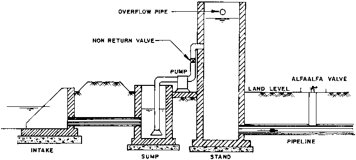 It is recommended that a pipeline system is employed downstream for better utilization of irrigation water. Pipeline systems, conveying water in proportion to demands, can meet individual demands and prevent spills and tailwater losses. In using a pipeline system, facilities having a regulating capacity (e.g., regulating reservoir, regulating tank or storage facilities) need to be constructed at the point where the pipeline system is connected to the main canal.