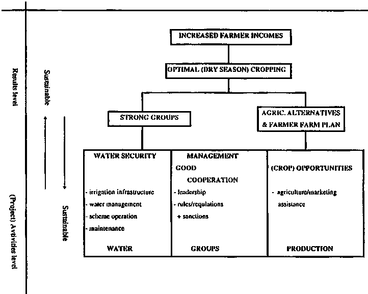 As expanded above, dry season high value crops are the only means of giving the farmers an acceptable return to labour. A shift toward integrated, diversified, value intensive farm enterprises should therefore be encouraged and for this time, training and commitment is needed. Government (and donor) support in software activities should therefore take precedence over continued investments in irrigation infrastructure. Investments in agricultural and marketing development and in institutional development and training are likely to show much higher returns than investments in hardware which is only partially used: first valorize the infrastructure which is already there.