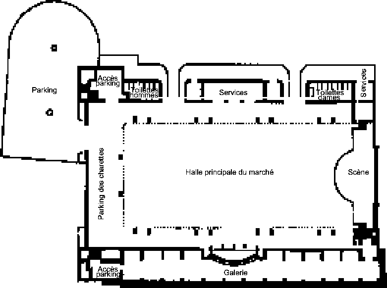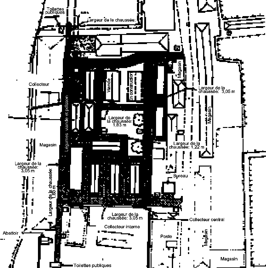 Source: Salodin, E. (non daté). Wanderings in Copenhagen. Carit Anderson éds, Copenhague.En premier lieu, il faut savoir avec précision quelles sont les contraintes que le programme de développement devra respecter. Ceci demande à ce que l'on procède à des enquêtes sur les caractéristiques actuelles du marché, sur son fonctionnement et sur sa gestion afin de les analyser (voir chapitre 3 et annexes A et B). Les problèmes les plus usuels d'un marché peuvent se subdiviser en gros en problèmes physiques, et en problèmes sociaux ou de gestion: