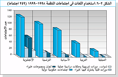 ويمكن تحت أى فئة من هذه الفئات عقد الاجتماعات الخاصة بالأجهزة الدستورية اذا كانت قد أنشئت أو على أساس مخصص. ويبين الشكل 2-6 اللغات المستخدمة بحسب فئة الاجتماع.