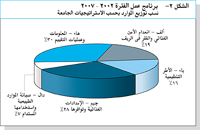 44 - وسوف يساهم عدد هام من المخرجات الرئيسية في هذا الهدف، وهى تغطي طائفة واسعة من الجوانب الجوهرية مثل: إدارة موارد الأراضي، نظم الإنتاج المحصولى المستدامة، التوسع في استخدام التنوع البيولوجي، تطبيقات التكنولوجيا الحيوية النباتية، الروابط الريفية/الحضرية جيدة الأداء في سياق التوسع العمراني السريع، والخدمات التجارية الكفؤة للقطاع الزراعي، البحوث الزراعية والنقاط البينية للإرشاد والتعليم، تنمية الاحياء المائية وتسويق المنتجات الحرجية.