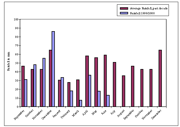 Autumn planting conditions were favourable. Relatively wet weather provided good moisture reserves and the late frosts provided a window of opportunity for late planting. This was important in view of delays in harvesting the bumper 1999 maize crop and disruptions in input supply.