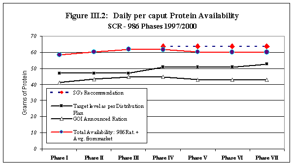 This mission confirms what many UN reports have stated, that SCR 986 food rations do not provide a nutritionally adequate and varied diet, though, except for the poorer segments of the population, supplementary food is acquired from other sources as well. Although since their effective implementation in 1997 they have halted further deterioration in the nutritional situation, they have not by themselves been able to reverse the trend. Although reasonably adequate in energy and total protein, the ration is lacking in vegetables, fruit, and animal products and is therefore deficient in micronutrients. With only one quarter of the planned ration of pulses distributed due to important gaps in the submission of applications for procurement, the protein quality of the diet has also been poor. Adequate amounts of items such as meat, milk and vegetables are too costly for families to purchase to supplement their diet given the parallel decline in the economy and the effects of the current drought on the availability of crops and horticultural products. Consequently a significant portion of the population requires special attention, particularly the most vulnerable population groups whose coping strategies are quickly being eroded.