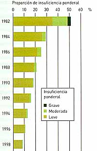 Progresos en la reducción de la insuficiencia ponderal de los niños menores de cinco años, 1982-98 |