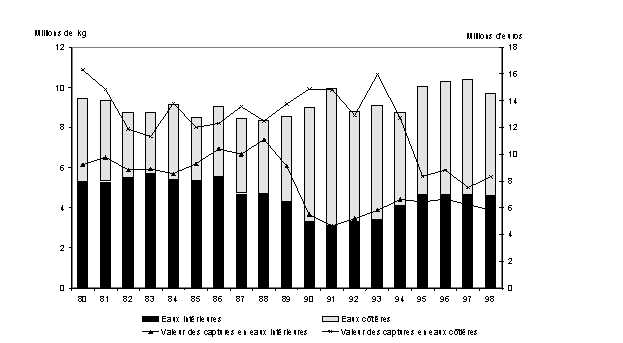 Les pays européens qui viennent en tête pour les pêches de capture sont la Fédération e Russie, la Norvège et l�Islande, dont la part de la production mondiale était respectivement de 5, 3 et 2 % en 1996. Dans la communauté des États indépendants (CEI), la production des pêches est passée de 9,6 millions de tonnes en 1988 à 5,2 millions de tonnes en 1996, soit une diminution de 46 % en huit ans. Les pêches marines représentent 94 % de ce total. Dans les pays de l�Union européenne (UE), la production totale des pêches a été de 6,4 millions de tonnes en 1996, soit environ 6,8 % de la production mondiale. Les pêches de capture marines représentent environ 98 % de ce total dans ces pays. La production des pêches manifeste également une tendance à la baisse dans les pays de l�UE, mais elle n�a diminué que de 10 % entre 1988 et 1996.