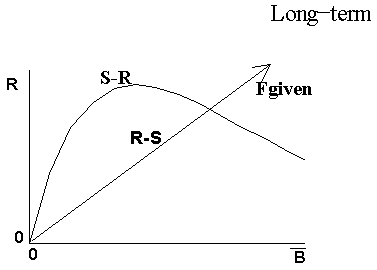 Notice that the intersection of the two relations does not always lead to an equilibrium point. The existence of an equilibrium point depends on the angle between the straight line and the curve at the intersection point.