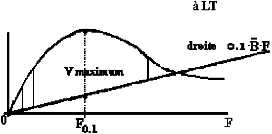 Pour déterminer ce point-limite on commence par obtenir, à partir de la courbe S-R ajustée, la valeur de R correspondante à Bloss. On calcule alors Bloss/R et on recherche dans la relation B/R contre F, à LT, la valeur de F correspondante.