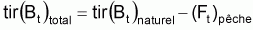 Quand le stock est exploité, il convient de séparer tir(Bt) dû à toutes les causes dans deux composants, soit, tir(Bt) dû à la pêche et tir(Bt) dû à toutes les autres causes, désigné par tir(Bt) naturel. Ainsi la supposition de base aura la forme suivante:
