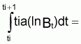Ainsi, en accord avec les propriétés des taux, et en attendant que r, k et Fi soient constants dans l'intervalle Ti, on peut écrire le taux instantané absolu de [r.(lnK-lnBt)-Fi] ainsi: