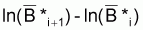 1/2[ln (Bi+1) + ln (Bi+2)] - 1/2[ln (Bi) + ln (Bi+1)] =