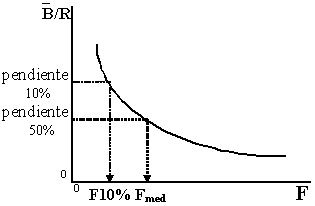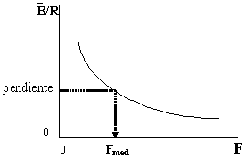 La Figura 5.1 muestra una curva de Y/R contra F, a LP, de un stock..
