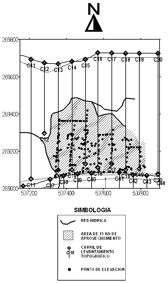 En los planes de manejo realizados en el país, el levantamiento topográfico para la construcción de los Modelos de Elevación Digital (MED) o mapas de curvas de nivel, se realiza mediante el establecimiento de carriles regularmente distribuidos por toda la unidad de manejo. La experiencia obtenida por FUNDECOR en la elaboración de planes de manejo para bosques en una superficie mayor a las 5000 ha con este sistema de levantamiento, ha demostrado que con un distanciamiento promedio de 75 m entre carriles, es posible obtener una representación funcional del relieve de la unidad de manejo, independientemente de si el terreno es plano o quebrado. Por lo general, los mejores resultados se obtienen cuando el sistema de carriles es diseñado de modo que estos corran perpendicularmente a la dirección en que drena la red hidrológica.