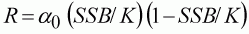 The B&H relation is similar to the logistic model. It has a carrying capacity, here the asymptotic maximum recruitment (a) obtained from the spawning stock biomass (SSB).