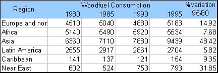 Table 2.3.1. Fuelwood consumption 1980 -1997
