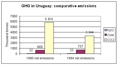 A national inventory of greenhouse gases (GHG) has recently been undertaken. The results showed that Uruguay could became a carbon fix country with only minor modifications needed in the diet of animals (the principal GHG emitted from Uruguay is the methane produced by ruminants), land works to conserve the organic matter of the soil and improving the efficiency of nitrogen-fertilizers (to decrease N2O emissions).