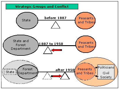 A similar situation in India is analysed by SHRIVASTAVA (1999). Forestry in India was for long time subjected to the originally from Germany imported thinking of state dominated scientific forestry and the respective forest police apparatus. Only step by step local people are able to re-establish their traditional position.