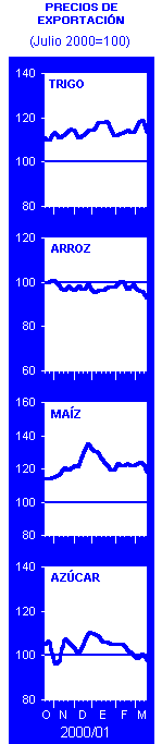El primer pronóstico relativo a la producción mundial de cereales en 2001 es de 1 889 millones de toneladas, casi 2 por ciento más que en 2000. La producción de trigo se pronostica en 585 millones de toneladas, sin modificaciones respecto a la cosecha del año pasado, mientras que para la de cereales secundarios se prevé un aumento de casi 4 por ciento a 905 millones de toneladas. Según pronósticos provisionales, la producción de arroz (elaborado) se mantendrá invariada en 399 millones de toneladas. Según los pronósticos, la producción de cereales en 2001 no será suficiente para cubrir la utilización prevista en la campaña de 2001/02, lo que daría lugar a una ulterior merma de las existencias mundiales. En la campaña actual de 2000/01, se pronostica un descenso de 48 millones de toneladas, o sea 4 por ciento, de las reservas mundiales de cereales a 645 millones de toneladas. Persisten las emergencias alimentarias de intensidad variada para más de 60 millones de personas de todo el mundo, como consecuencia de catástrofes naturales y causadas por el hombre. Según los pronósticos actuales, la utilización mundial de cereales en 2000/01 aumentará marginalmente a 1 907 millones de toneladas. El volumen de los cereales utilizados para el consumo humano aumentará un 1,1 por ciento, a 971 millones de toneladas, principalmente en los países en desarrollo de Asia y la CEI. La utilización mundial de cereales para piensos en 2000/01 se pronostica ahora en 686 millones de toneladas, volumen ligeramente superior a los 682 millones de toneladas del año anterior. El comercio mundial de cereales en 2000/01 (julio/junio) se pronostica ahora en 233 millones de toneladas, 3 millones de toneladas menos que el último informe y 2 millones de toneladas menos que el nivel récord de la campaña anterior. La merma comparada con la campaña de 1999/2000 se atribuye a la disminución de las importaciones de trigo, que pasarían de 109 millones de toneladas en 1999/2000 a 107 millones de toneladas. Los precios internacionales de los cereales se mantienen en general bajos, como consecuencia principalmente de la gran cuantía de suministros exportables y una demanda floja. Los precios del trigo se mantuvieron estables en las últimas semanas en un nivel superior al del año pasado, a causa principalmente del fortalecimiento de la demanda de trigo de alta calidad para molienda. Los precios internacionales del maíz son inferiores al nivel ya bajo de la campaña anterior. En el mercado del arroz, la llegada de las nuevas cosechas de algunos de los principales países exportadores y la persistencia de una demanda floja de importaciones provocaron un descenso ulterior de los precios desde diciembre de 2000. |