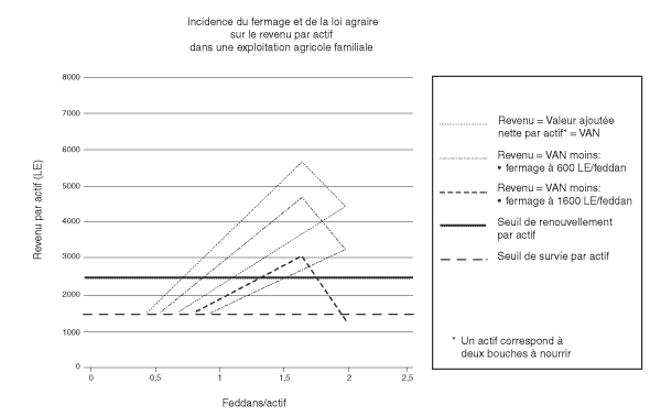 Enfin, même avec des rendements moyens, de petites exploitations disposant d'une main d'oeuvre excédentaire sans valeur sur le marché (une partie des femmes, et personnes hors d'âge) ou de peu de valeur commerciale (5 LE par jour pour un enfant et 6 LE par jour pour une femme) pouvaient encore trouver intérêt à louer quelques feddans.
