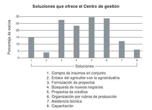 Respecto a las soluciones que ofrece el Centro de gestión para sus asociados, las cuales tienen relación con la demanda de éstos, se puede observar que un gran porcentaje de los socios actualmente prioriza más servicios de gestión y de asociatividad que la demanda tradicional por tecnología productiva.