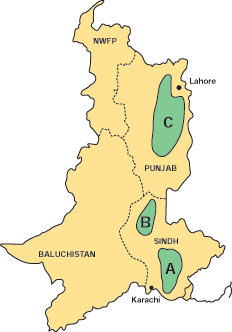 An urban livestock system can consist of anything from one woman with one goat and/or some chickens in the backyard to a large company with more than 30 000 chickens. Another example of an urban livestock system is the Landhi milk colony in Karachi (Pakistan) where tens of thousands of cattle are kept in one place, most of them individually owned. This production pattern is a highly specialized, purely business-oriented system that fully exploits the neighbouring high-demand market, as well as the availability of buffaloes that have recently calved and of feed and fodder sources from the Sindh and Punjab provinces (Figure 2). In India, large dairy enterprises in, for example, Mumbai and Pune purchase buffalo and dairy cow calves from Haryana and western Uttar Pradesh, a distance of about 1 000 km by road. Similarly, in Abidjan (Côte d'Ivoire), beef comes from the grazing areas far north; in Damascus (Syrian Arab Republic), day-old chicks come (or used to come) from Europe; and roughage for dairy and beef animals in Khartoum (the Sudan) originates largely from the Gezira scheme, an irrigated area some 100 to 200 km south of the city.