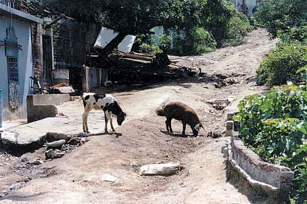 The cobblestones in Pompeii (Italy) bear the scars of wear and tear through intensive cart traffic (as mentioned in Chapter 1). In Madrid (Spain) there was a significant peri-urban livestock keeping sector until very recently. Sumberg (1996a, 1996b and 1999) shows how urban livestock systems have been very common in the United Republic of Tanzania for at least a century. After the major earthquake that hit Mexico City in the 1980s, many dead pigs were found in the rubble - animals that had been kept in apartments often several storeys high. A great many other examples of urban livestock keeping are discussed by RUAF (2000). Across Europe there are towns and cities with traditional "hay" and "straw" markets, and many squares and streets still carry that name. These sites were used for the trading of straw and hay which came from rural areas to feed the horses, oxen and cows that were needed for transport and/or production of milk, etc. in the city. Phelan (pers. comm., 1999) recounts how dairy cows used to be a common sight in Copenhagen (Denmark), where they cleaned-up leftovers from the beer breweries. Obviously, there was and is a point in keeping livestock in cities, either as a specialized enterprise or in combination with gardening and farming in and around the city. Urban livestock systems exist all over the world, in spite of the many problems they are perceived as creating. This raises the question, why do they exist?
