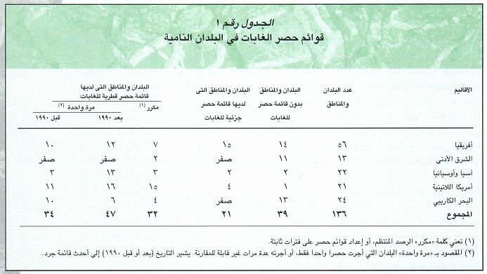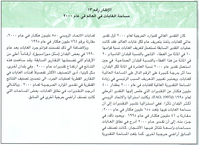 (1) موقع مصلحة الغابات فى منظمة الأغنية والزراعة على شبكة انترنت (w.fao.org/forestry/fo/fra/index.jsp) هو أكثر المصادر استيفاء للمعلومات بشأن كل جوانب التقدير، كما يتضمن معلومات عن البلدان جميعها. ويمكن الاطلاع على نتائج تقدير الغابات المعتدلة والشمالية في البلدان الصناعية فى ( UN-ECE/FAO (2000b)