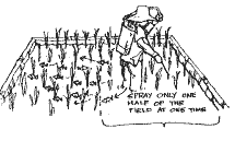 In fields with trench/pond designs, the water should be drained into the trench or pond, thus driving the fish into the refuge area before the application of pesticides.