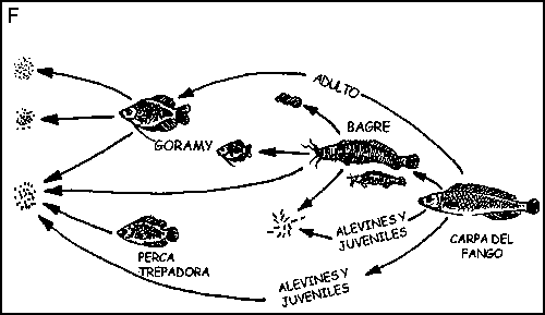 La mayor parte de este trabajo se ha hecho en sistemas arroz-peces. En algunos casos, se han descrito los mecanismos expuestos en la figura siguiente.