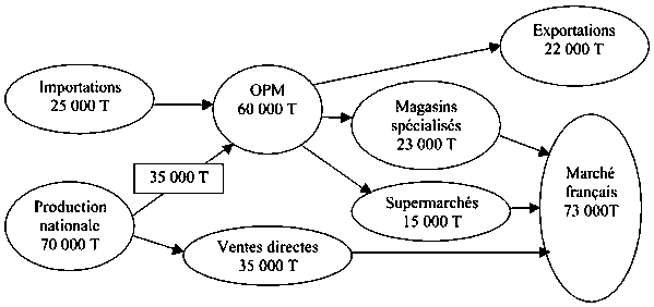 En 2000, les fruits et légumes biologiques étaient cultivés sur 27 945 hectares (y compris les vignes et les terres en conversion à lagriculture biologique), représentant 7,5 pour cent du total des terres cultivées biologiques. Il nexiste pas de données officielles sur les volumes produits, mais la production française de fruits et légumes biologiques est estimée par lauteur à quelque 70 000 tonnes pour 1999. LONAB effectue actuellement une étude plus détaillée afin dévaluer les volumes pour chaque produit.