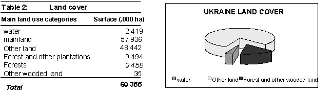 Even though Ukraine has relatively scarce forest cover (only 15.7 percent of its territory is considered forested; see Table 2), it has a high level of forest productivity (both as growing stock and net annual increment)2, when compared with other European countries (UN/ECE, 1999).
