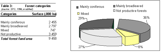 A partial reorganization of the entire sector took place as a consequence of the privatization of State-owned properties12 initiated in 1992. The traditional forest sector has been divided into two main branches: forestry has remained in public hands while most of the woodworking enterprises have been privatized 13.