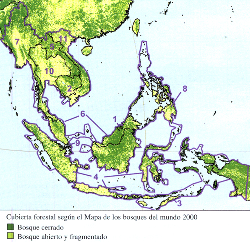 Figura 24-1. Asia Suroriental: mapa de la cubierta forestal