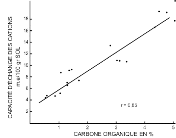 Figure 12Relations entre le carbone organique et la capacité d’échange en cations dans un sol expérimental