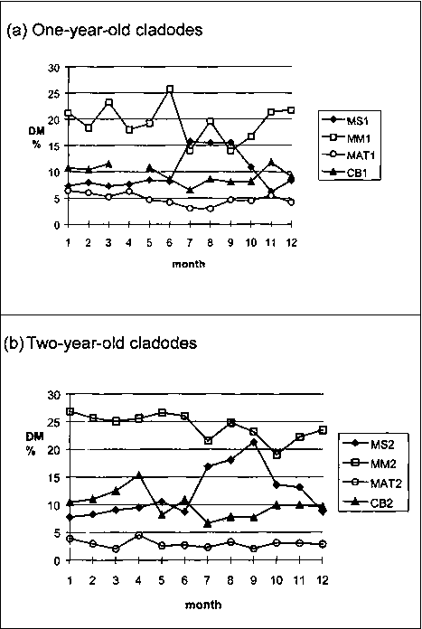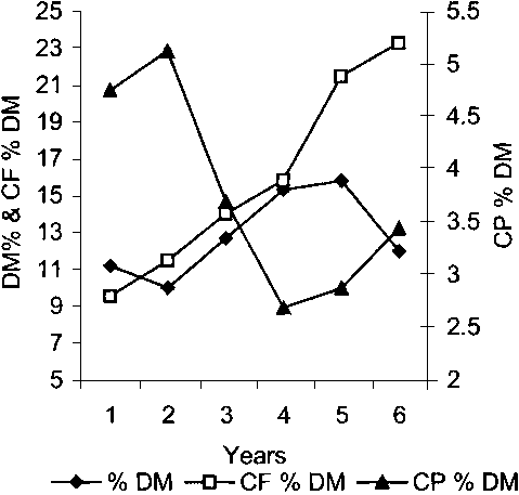 (i) As cladode age increases, so dry matter and fibre contents increase and crude protein content decreases.