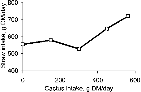(vii) Cactus is an unbalanced diet and should be fed in association with fibrous foodstuffs (straw, hay, shrubs, etc.). It also needs to be supplemented with an appropriate and cheap nitrogen source.