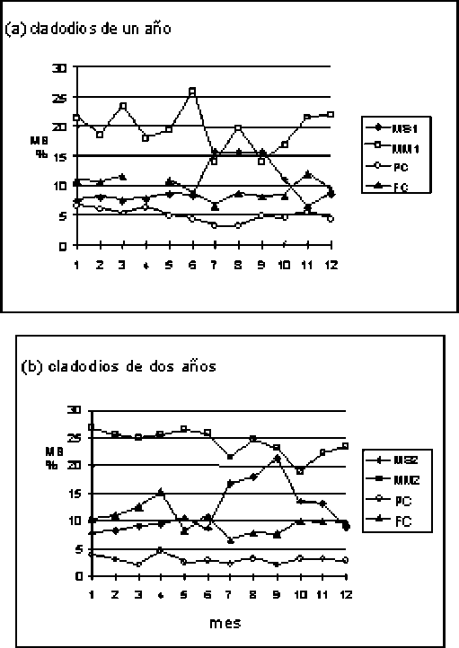 i) Conforme la edad del cladodio aumenta, el contenido de materia seca y de fibra aumenta y el de proteína cruda disminuye.