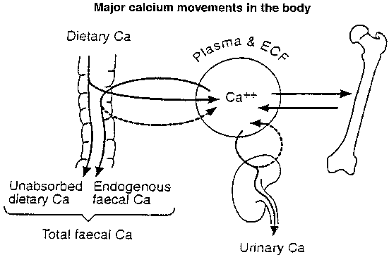 Figure 13. Major calcium movements in the body