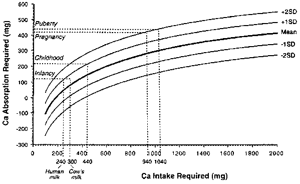 It is nearly 30 years since the last FAO/WHO recommendations on calcium intake were published in 1974 (1) and nearly 40 years since the experts meeting in Rome (2) on which these recommendations were based. During this generation gap, a paradigm shift has occurred with respect to the involvement of calcium in the aetiology of osteoporosis. The previous reports were written against the background of the Albright paradigm (3), according to which osteomalacia and rickets were due to calcium deficiency, vitamin D deficiency, or both, whereas osteoporosis was attributed to failure of new bone formation secondary to negative nitrogen balance, osteoblast insufficiency, or both. The rediscovery of earlier information that calcium deficiency led to the development of osteoporosis (not rickets and osteomalacia) in experimental animals (4) resulted in a reexamination of osteoporosis in humans, notably in postmenopausal women. This reexamination yielded evidence in the late 1960s that menopausal bone loss was not due to a decrease in bone formation but rather to an increase in bone resorption (5-8), and this has had a profound effect on our understanding of other forms of osteoporosis. Although reduced bone formation may aggravate the bone loss process in elderly people (9) and probably plays a major role in corticosteroid osteoporosis (10) - and possibly in osteoporosis in men (11) - bone resorption is increasingly held responsible for osteoporosis in women and for the bone deficit associated with hip fractures in elderly people of both sexes (12). Because bone resorption is also the mechanism whereby calcium deficiency destroys bone, it is hardly surprising that the role of calcium in the pathogenesis of osteoporosis has received increasing attention and that recommended calcium intakes have risen steadily in the past 35 years from the nadir which followed the publication of the report from Rome in 1962 (13). The process has been accelerated by the growing realisation that insensible losses of calcium (via skin, hair, nails, etc.) need to be taken into account in the calculation of calcium requirement.