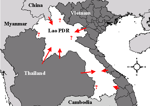 Long transportation times and poor handling will affect imported fish. The sale of poor quality fish that cannot be marketed in the country of origin is another consideration. Farmers express a preference for fish produced locally and will pay more if they can obtain them. It is significant to note, that where LAO/97/007 activities increased fingerling supplies locally, there was a decrease in demand for fry from the Chinese traders who had previously been importing fish. Targeting of assistance to small-scale fry and fingerling producers is a priority LAO/97/007 activity. Figure 1 shows the known entry points for fry importation into Lao PDR. Other possible entry points are marked "?."