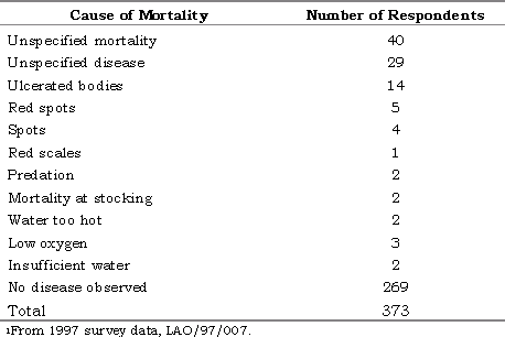 Table 5. Fish mortality reported by farmers (1997 survey)1.
