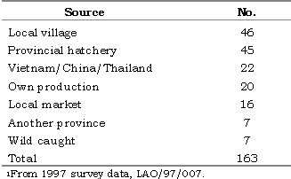 Table 6. Source of fingerlings for stocking in ponds.1