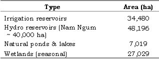 Table 7. List of areas of large and small water bodies in Lao PDR.